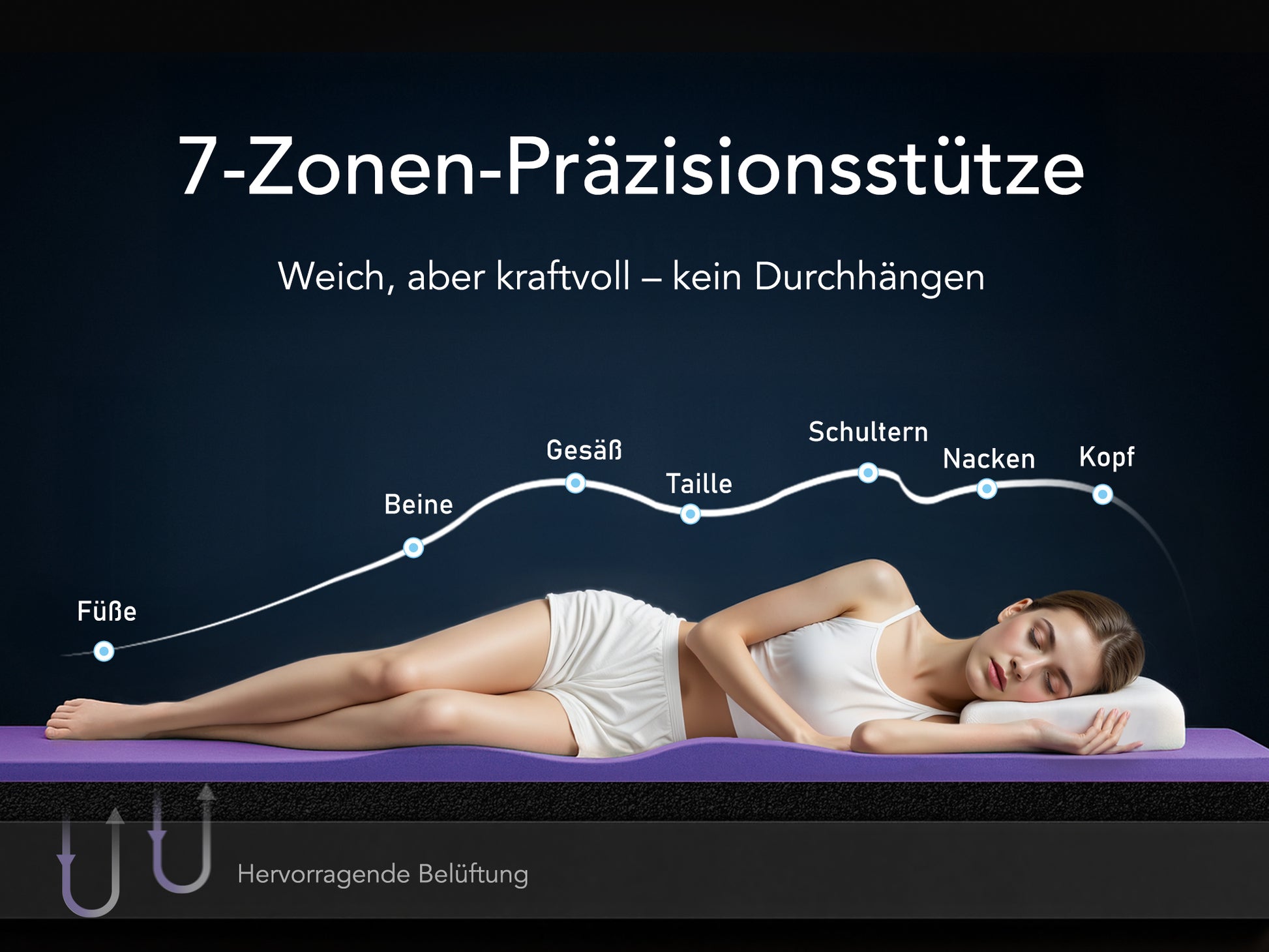 Ergonomic 7-Zone Design: Specifically targets pressure relief, adapts to any sleeping position, and provides an exceptionally relaxed lying experience.
